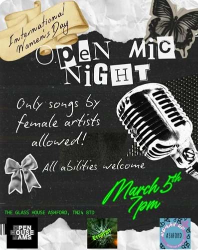 🎵🎤Celebrating International Woman's Day - Open Mic Night at The Glasshouse, Ashford.
